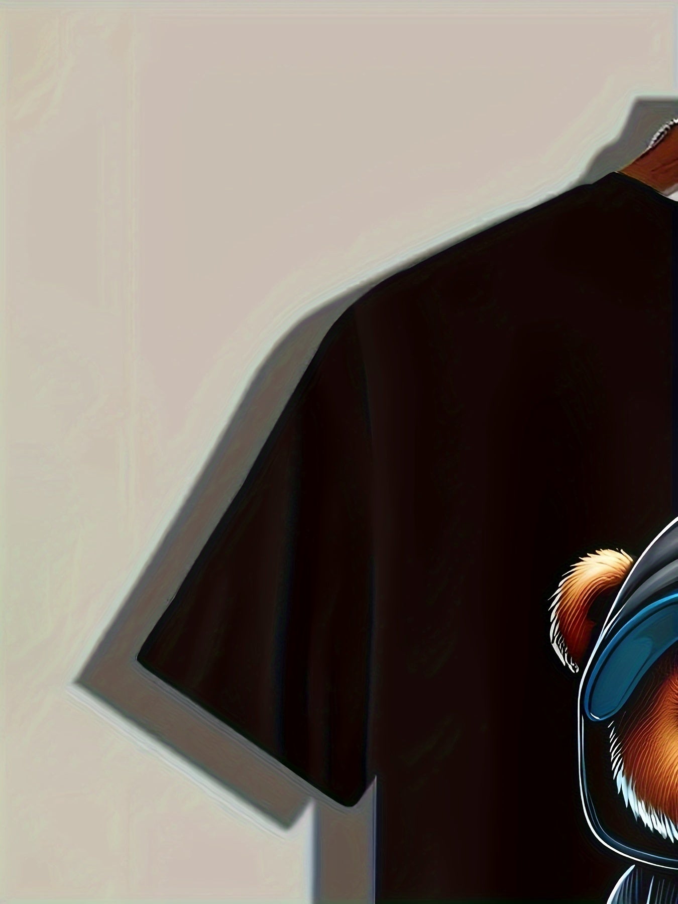 Men's Casual Geometric Bear Hat T-shirt Design - Polyester Knitted Fabric, Round Neck, Regular Style, Novel And Fashionable Clothing